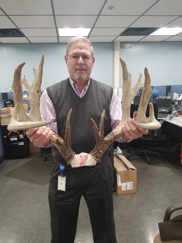 I happened to pick the right day to visit with my customer friend. This is the rack from the buck I posted a few weeks ago. Pictures really don't put this in perspective until you handle this beast. It is truly massive. The bases are as large as a soda can. The taxidermist is doing a pedestal mount. Can't wait to see the final mount.
