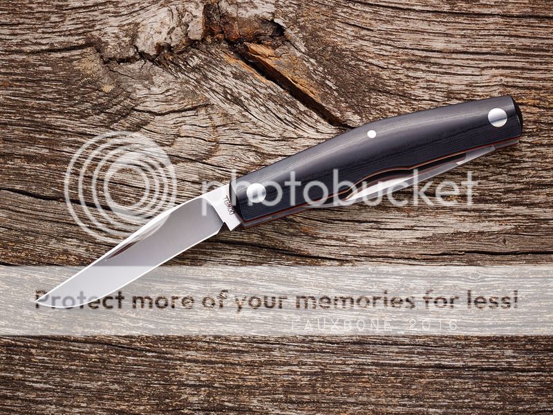 ...black linen Micarta, orange liners. Closed length is 4" and steel is cts-xhp. Ground nice and thin - it's an incredible slicer. Perfection