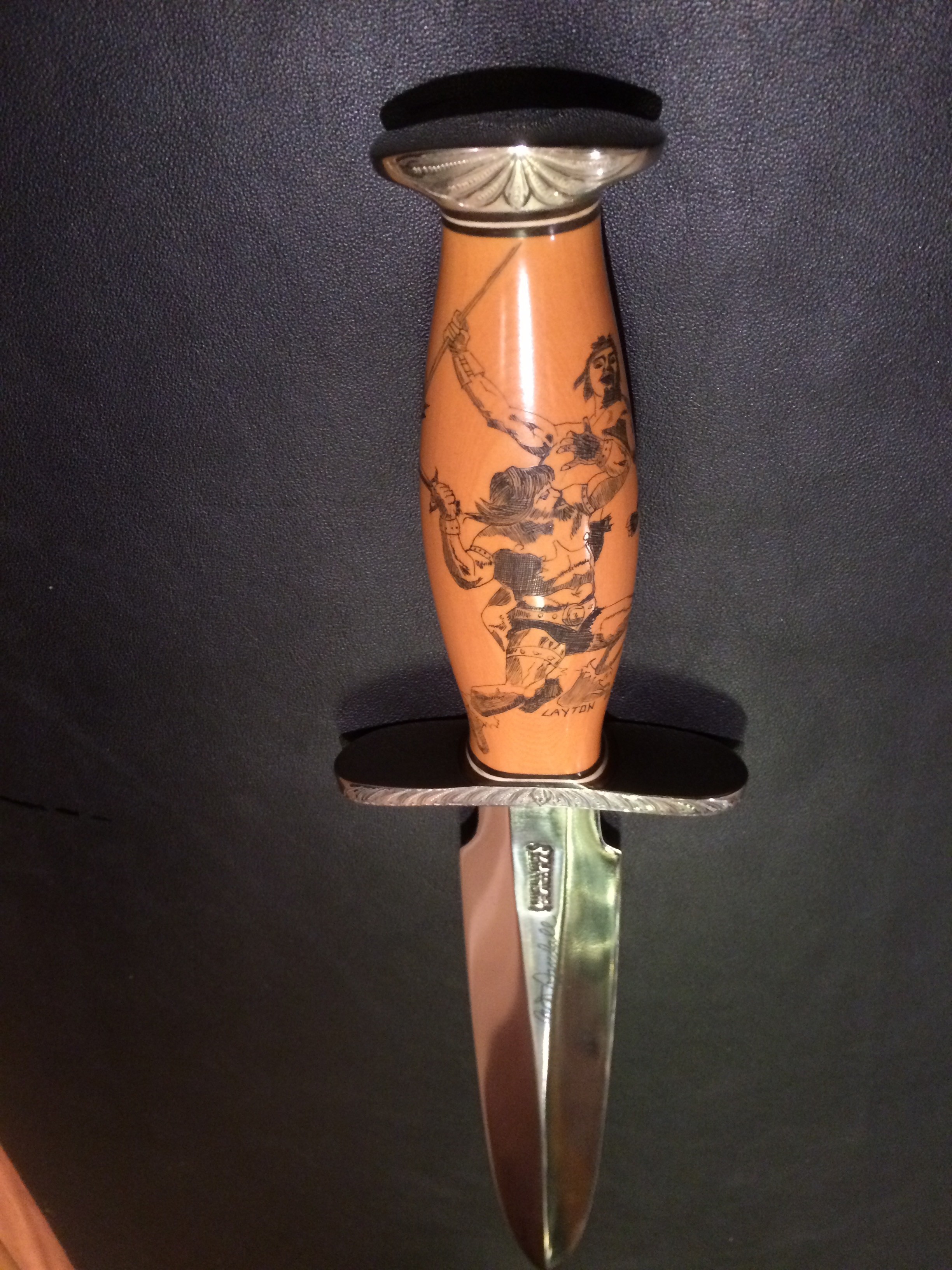 ------Bo-signed blade, Old Yeller, Layton Scrimmed and engraved 9 inch-Kit Knife Nickel Silver-KT.jpg