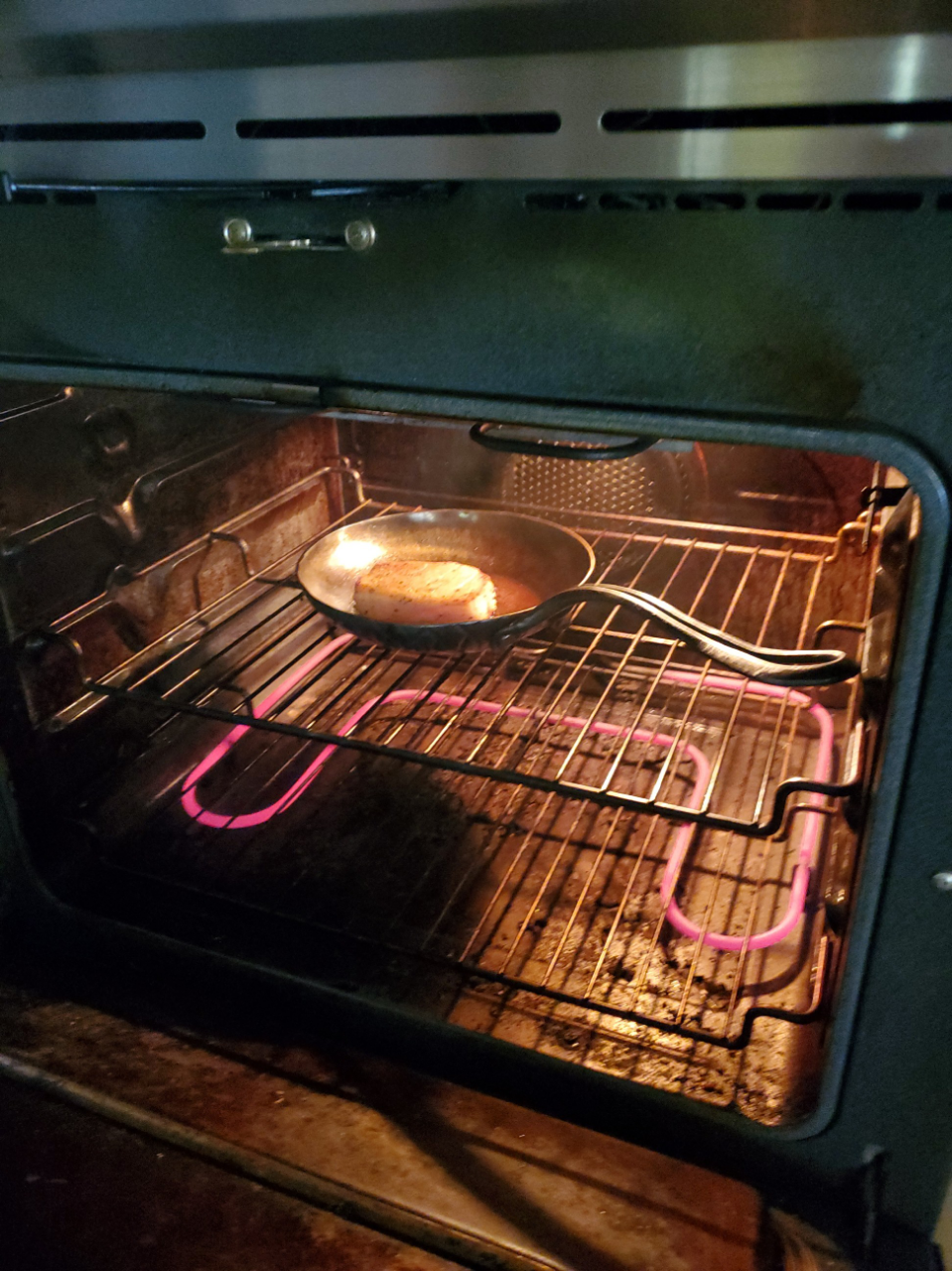 My new carbon steel skillet...finishing off a center cut pork chop!!