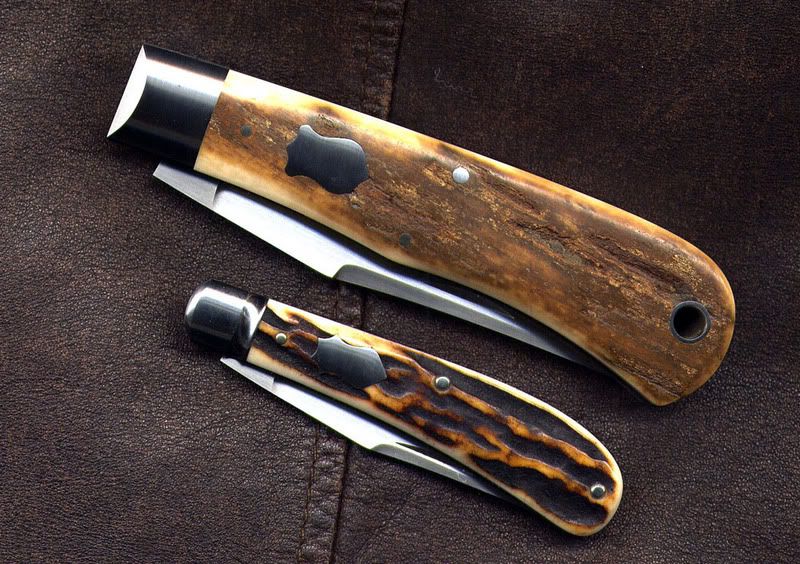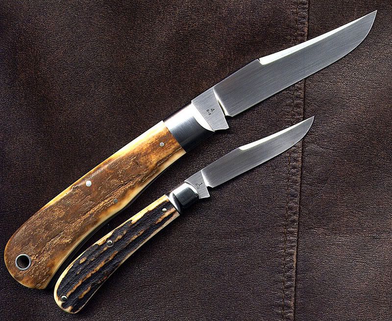 Got this 4.5 inch mammoth back pocket by Reese from John Hanlon last week. These back pocket knives are cool and I like the flush joint on this big one. Pictures are with a gent's knife, also by Reese.