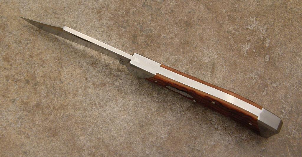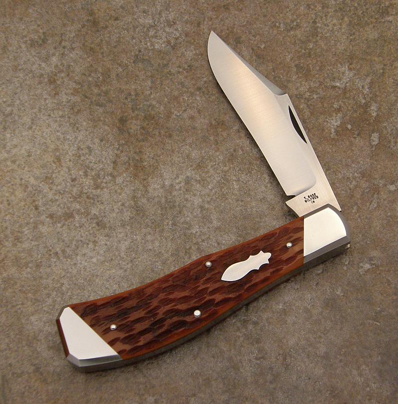Here is the prototype that Tony worked up for Case for the 2008 collaboration knife. It is patterned from an old Empire Knife Co. saddlehorn lockback but for Case, only in slip joint form. The prototype is 4.5" long with Case bone, ATS-34 blade and springs, all stainless hardware.