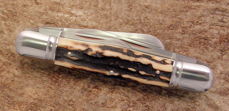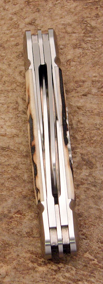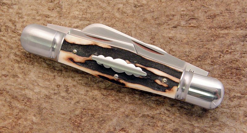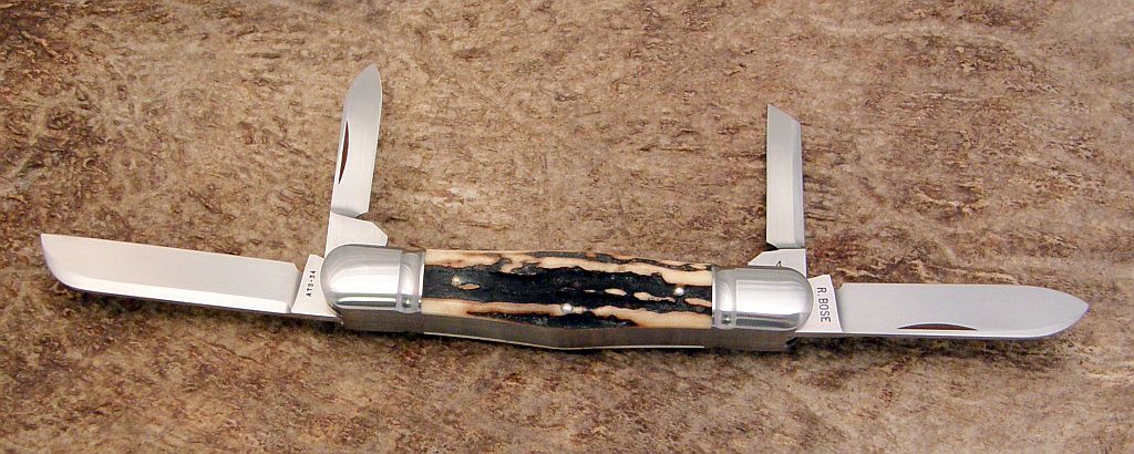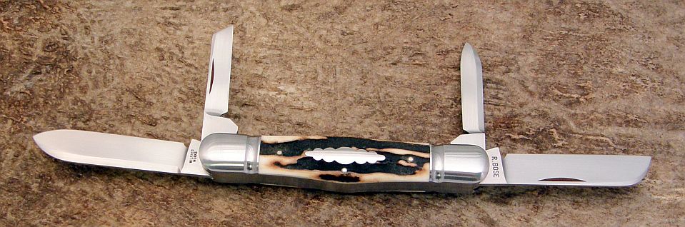 The Balloon pattern that the Bose fellas do is really a cool pattern. Four blades in a compact and practical package. This one by Reese has some very nice stag, ATS-34 blades on 2 double end springs, SS hardware and a bubbleishious SS pinned balloon shield. Stamped "4".:eek::D