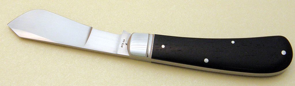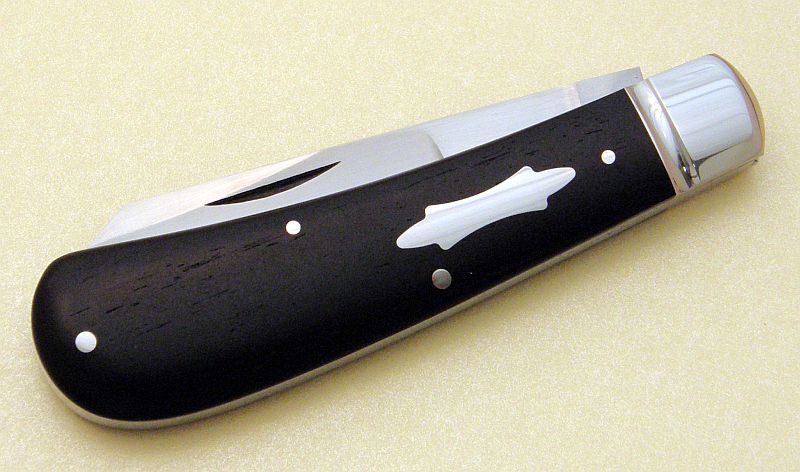 Black and beautiful ebony cotton sampler by Tony....ATS-34 blade and spring (stamped "4"). Tony tells me this is the first folder that he put ebony on. He has used ebony on fixed blades though.