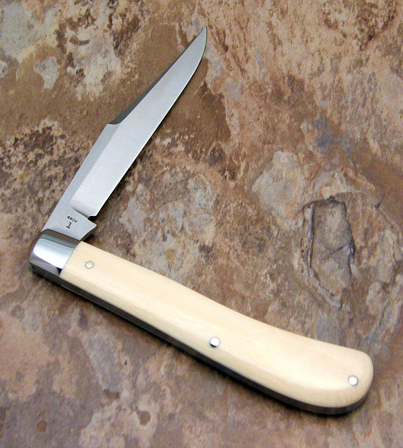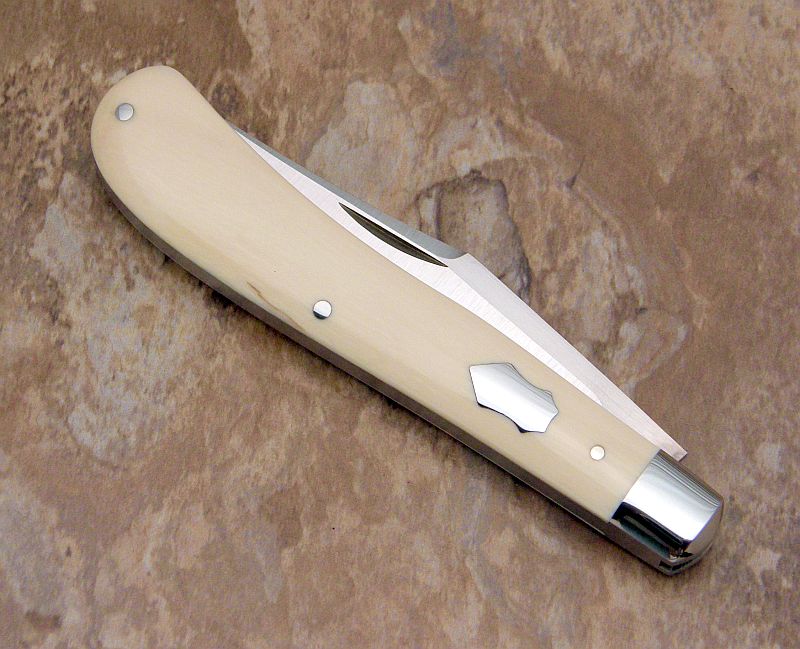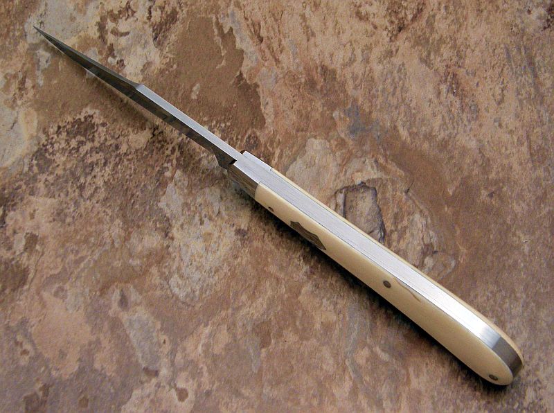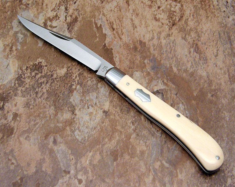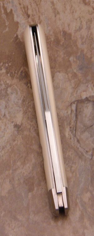 With the ivory, I like the way the bolster was done on this knife, radiused versus pinched, and leaving the swing guard off. It's a little more elegant and sleek.