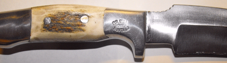It is a R.H. Ruana but without the "M" stamp which puts it right in line with the 1982 year. It is a Model 27 "Finn" which is still made today but with a totally different "Ruana" stamp. Value on yours being pretty used is about $200-250. It is not rare. http://www.ruanaknives.com/